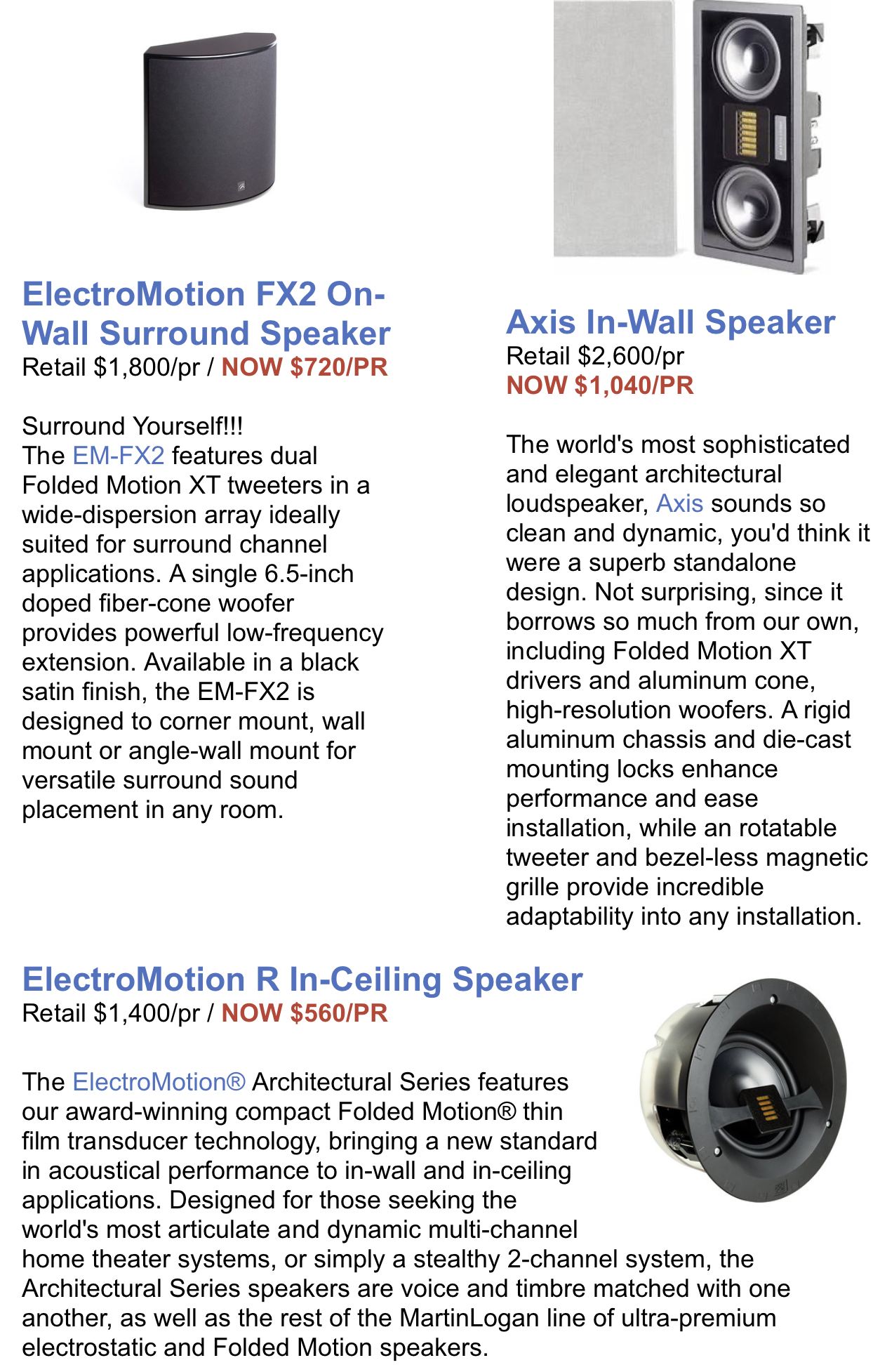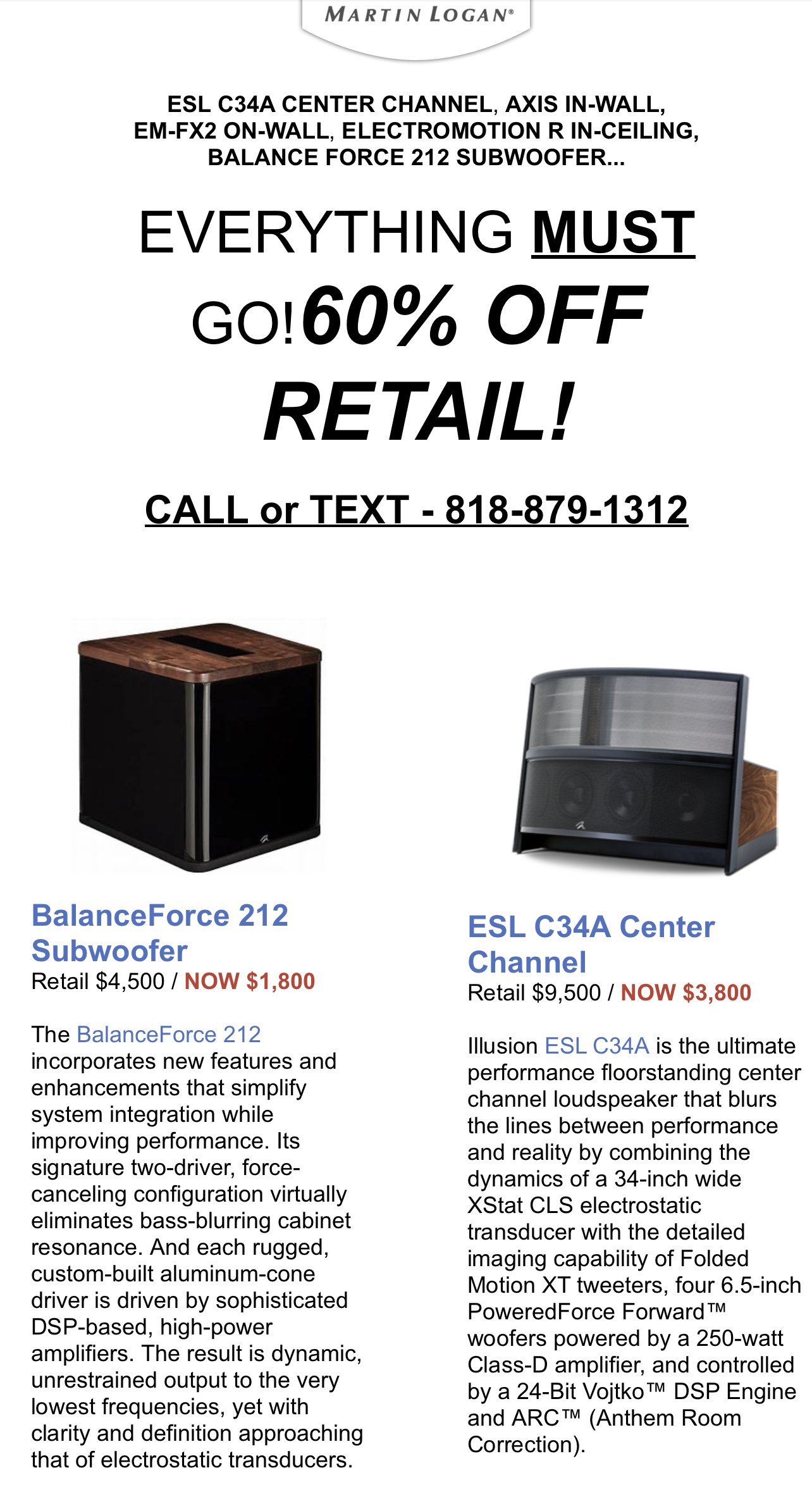 Martin Logan Showroom Demos Deal - 60% OFF Retail!